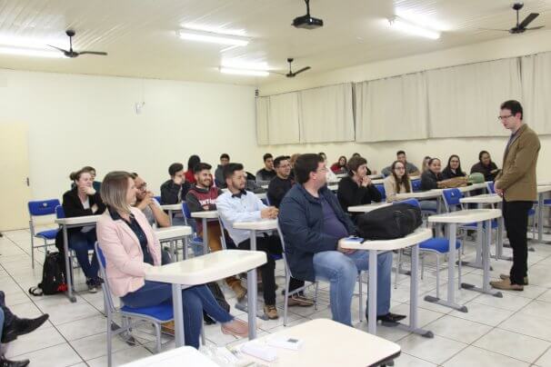 O evento foi aberto pelo professor Paulo Campos, vice-reitor acadêmico e pelo professor Vilmar José Zaccaron, coordenador do curso de Administração.